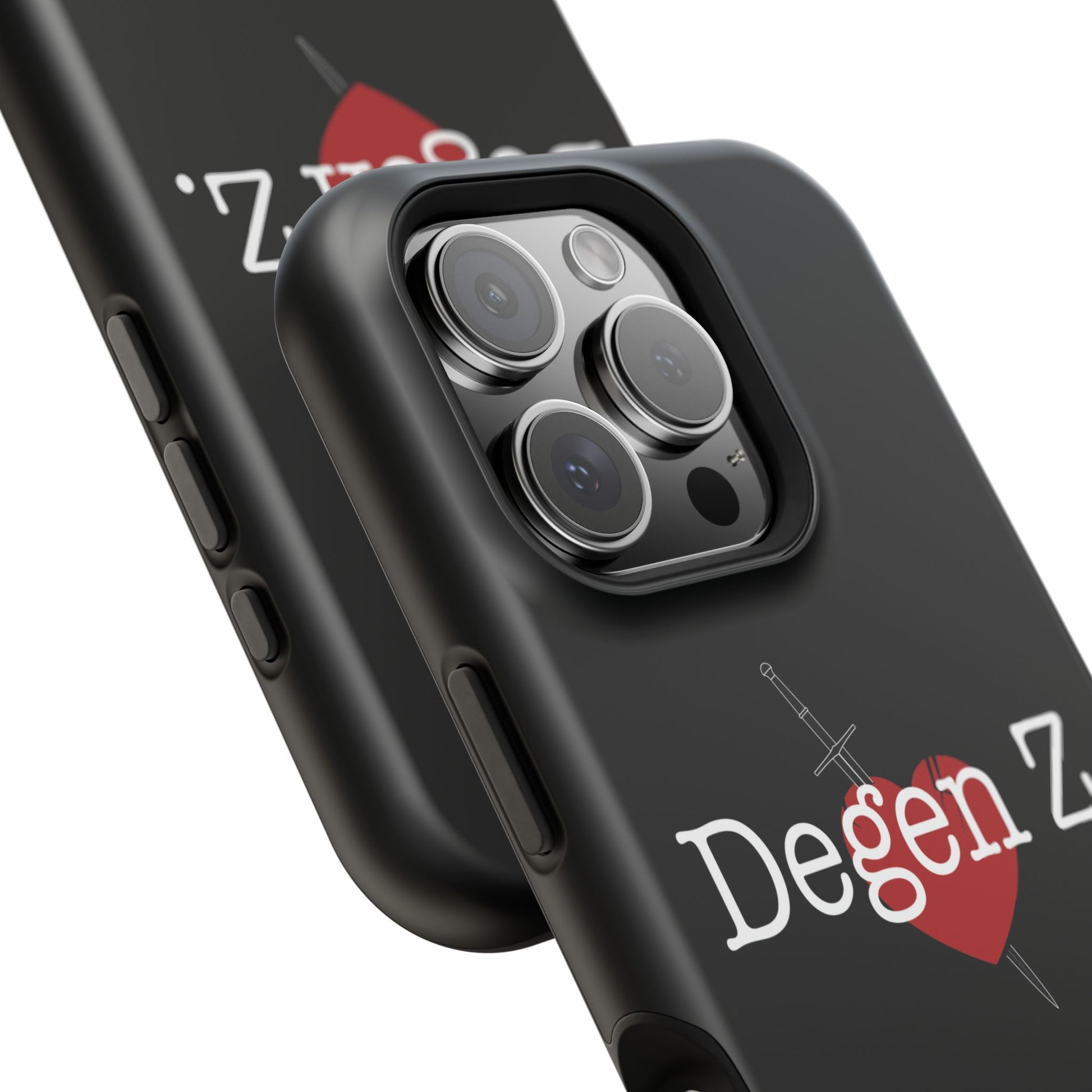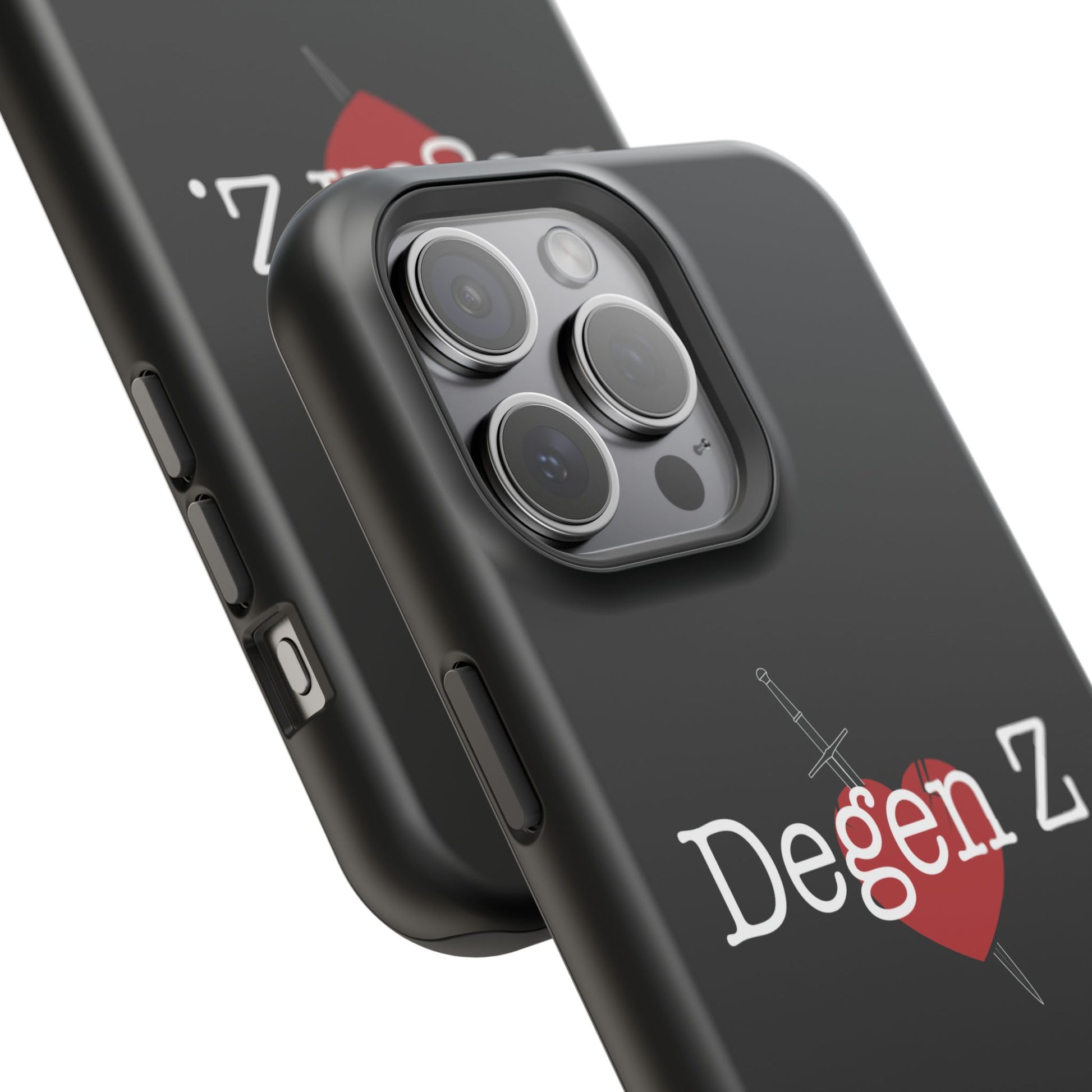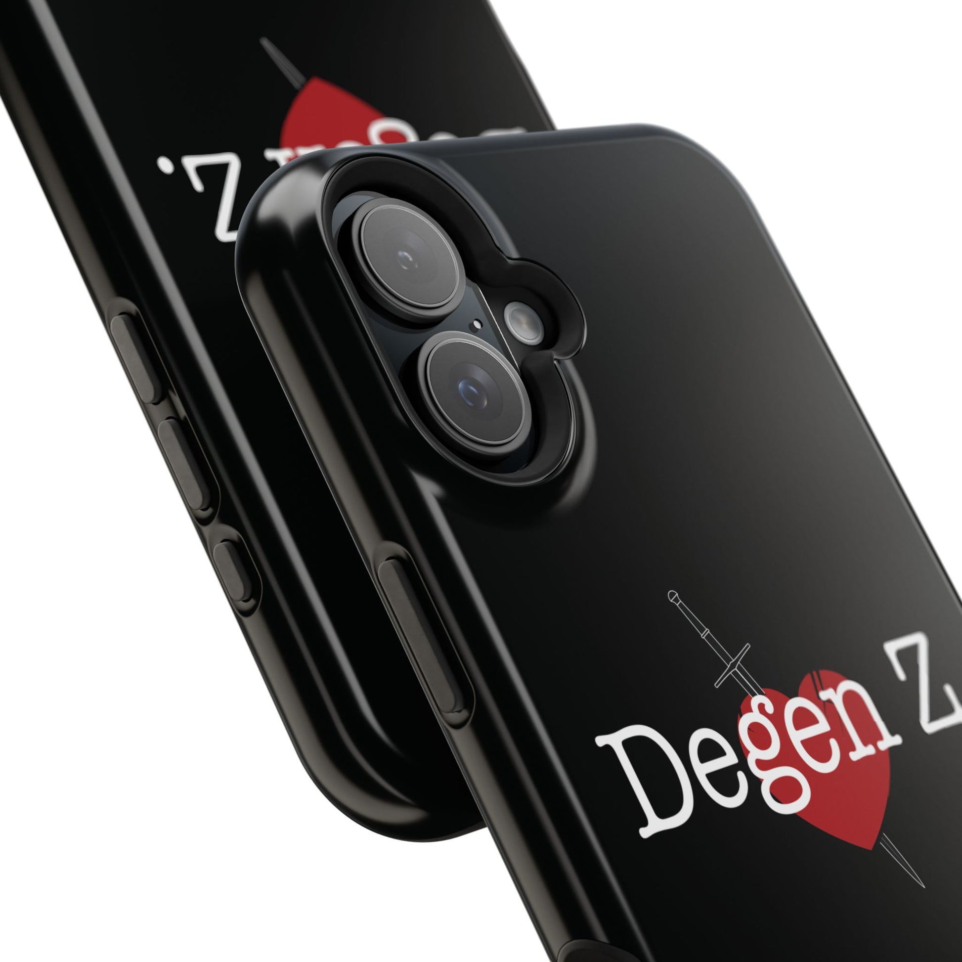 This slim, impact-resistant phone case brings a bold, underground energy to your everyday carry. The matte or glossy full-wrap print shows a stark black backdrop with a stitched heart pierced by a dagger and the text “Degen Z.” — a look that reads like a quiet badge for those who lean into gritty, late-night scenes and nostalgic internet subcultures. The dual-layer shell and cushioned inner TPU liner give dependable protection against scuffs and drops while keeping the profile sleek enough to slide into pockets. Built-in magnets add MagSafe® compatibility so you can snap on chargers or accessories without fuss. It’s the kind of case that moves with you from coffee shop debates to midnight playlists, carrying an attitude that feels personal and unfiltered.